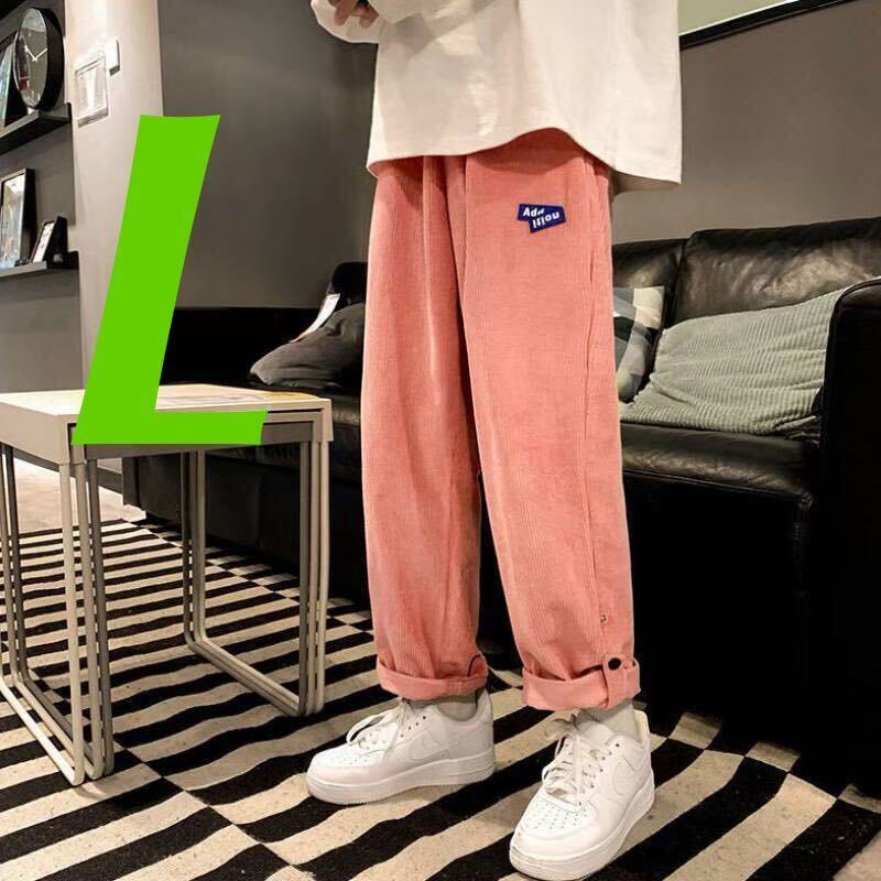 - ワイドパンツ ボトムス コーデュロイ ストレートパンツ トレンド ストリート ユニセックス メンズ レディース 絶賛 ピンク L