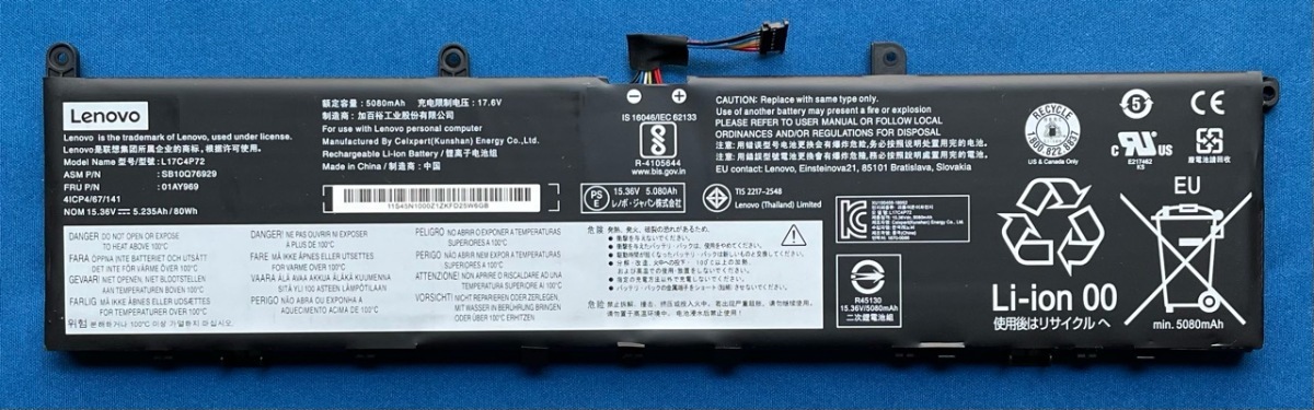 - 純正新品 Lenovo ThinkPad P1 Gen1 X1 Extreme Gen1 Gen2等用 バッテリー L17C4P72