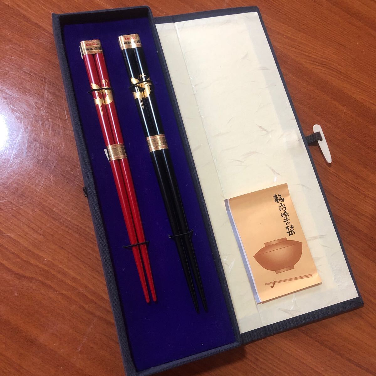 - 〈送料無料〉輪島塗 夫婦箸 箸 塗箸 天然うるし 漆 うるし 鶴 松喰鶴 松 金彩 天然木 漆芸 工芸品