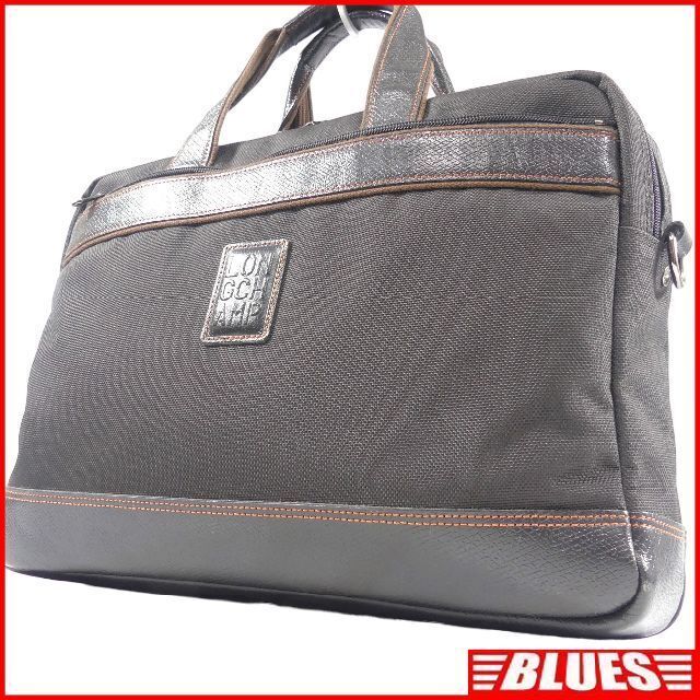 - 即決★LONGCHAMP★レザーコンビビジネスバッグ ロンシャン メンズ 黒 ショルダー 本革 ブリーフケース 本皮 通勤 カバン 出張 鞄レディース