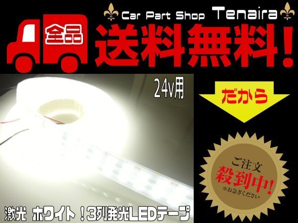 > 24V トラック 船舶 漁船用 爆光3列(900連球)基盤 カバー付 LEDテープライト 白色 ホワイト 蛍光灯 航海灯 5M 送料無料/7