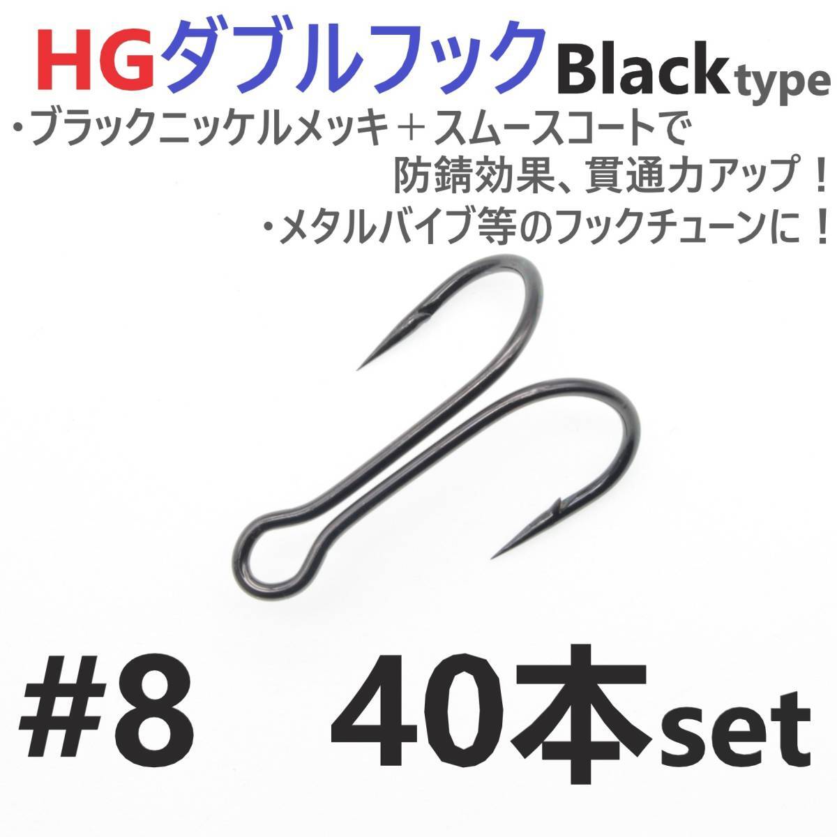 - 【送料150円】HGダブルフック ブラック #8 40本セット ハイグレードフック ソルト対応 メタルバイブ バイブレーション フックチューンに!