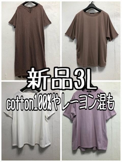- 新品☆3L♪コットン100%やレーヨン混のうす手ウエアお得な4点セット☆b746