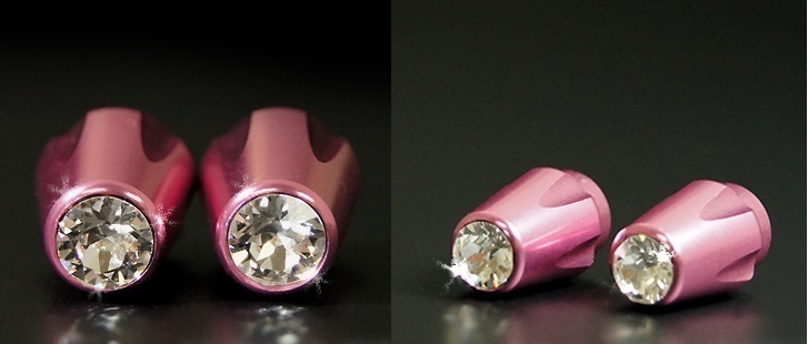 - ★大粒・本物スワロフスキー使用!アルミ・エアバルブキャップ/エアーバルブキャップ【ピンク/4個セット】