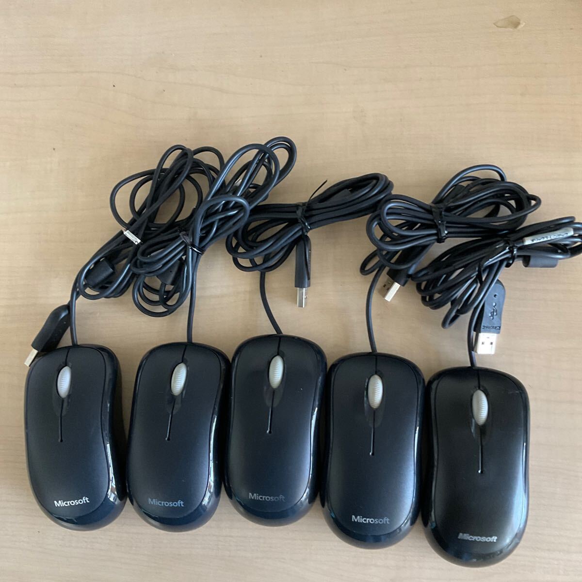 - ◎(102-1) 5個セット Microsoft ホイール付 USB接続 光学式マウス ブラック MSK-1113(B) 中古 (米6)
