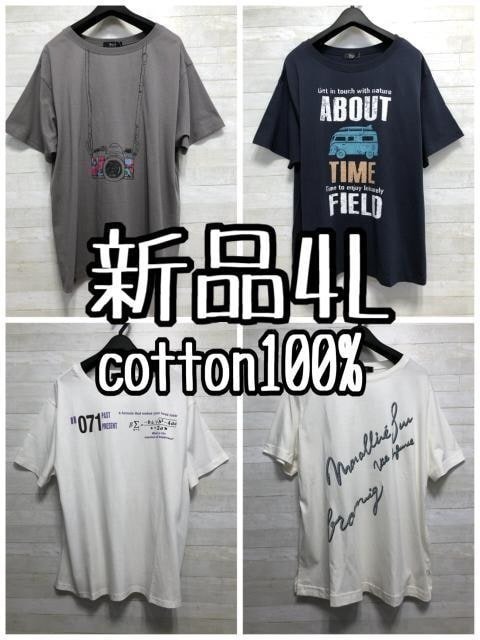 - 新品☆4L♪プリントデザインおしゃれ綿100%Tシャツ4枚セット☆f423