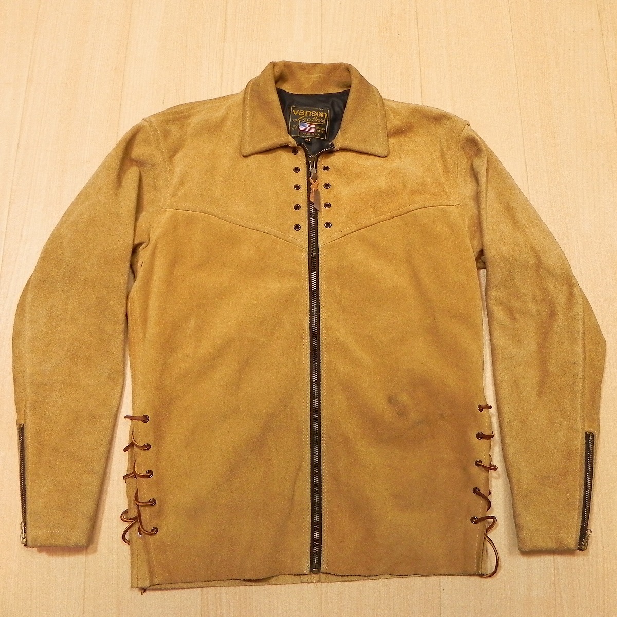 - 希少 VANSON バンソン DENV デンバー プルオーバー スエード レザージャケット XS フルジップ カスタム レースアップ 古着 ★h