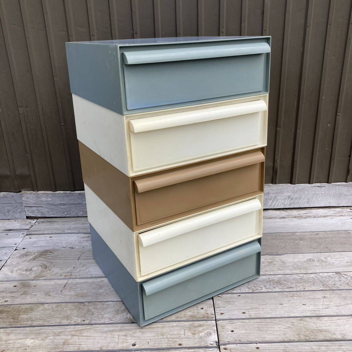 - 1970's アメリカ製ビンテージ プラスチック 積み重ね式 引き出し 5段セット マルチカラー
