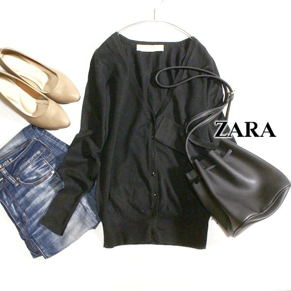 > 美品 ZARA KNIT ザラニット 綺麗め細身 コットン ニット プルオーバー M 春 秋 24D09