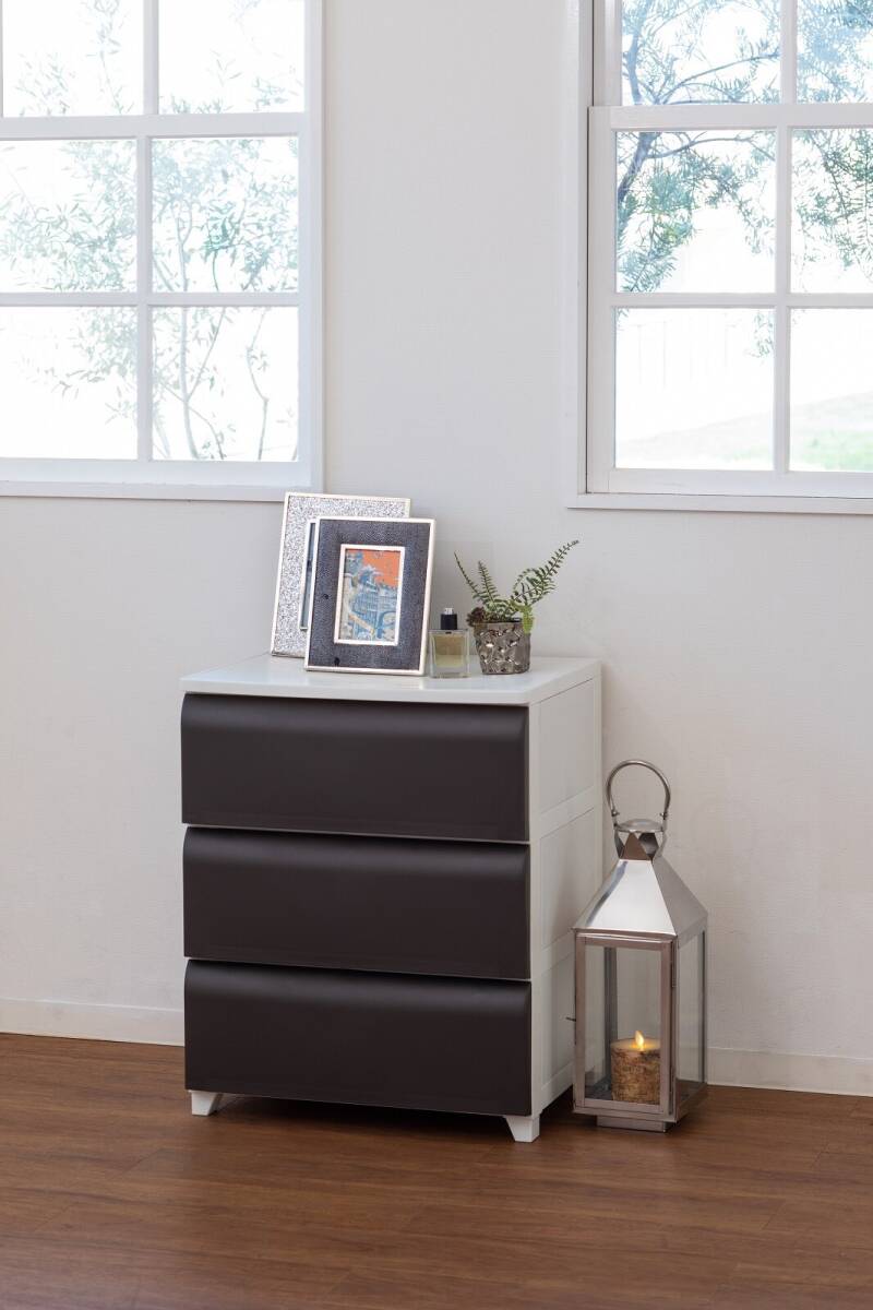 - PES CST 収納チェスト 3段 日本製 ホワイト*ブラウン ワイド