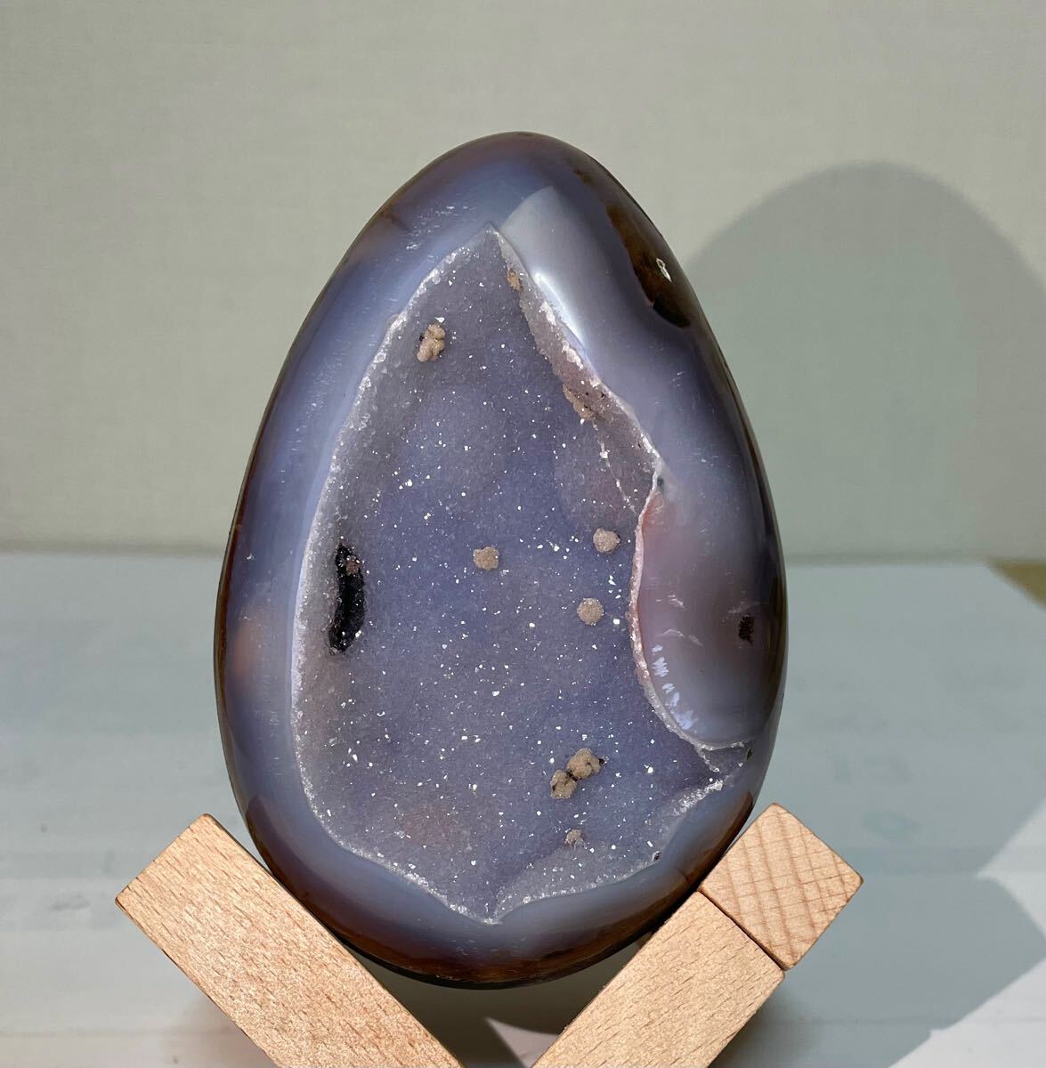- 瑪瑙のエッグ アゲート 006 風水晶 パワーストーン 置物インテリア 財運 金運UP 魔除 お守 結晶 卵型 浄化 ドゥルージー カルサイト共生