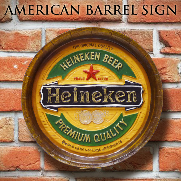 > ★古いBARの雰囲気を演出!ハイネケン ウォールオブジェ バレルサイン ビア樽型 立体看板 36cm Heineken 酒樽 Bar 店舗用 看板 壁掛け