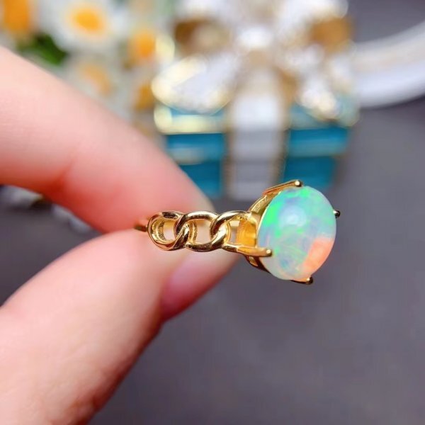 《証明書付き》天然ホワイトオパールリング、シルバー925