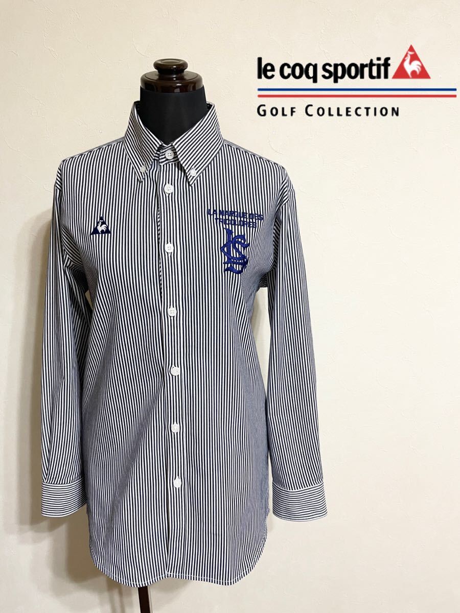 - 【美品】 le coq sportif golf ルコック レディース ゴルフ ウェア ボタンダウン シャツ トップス サイズM 長袖 ネイビー ホワイト QG1049
