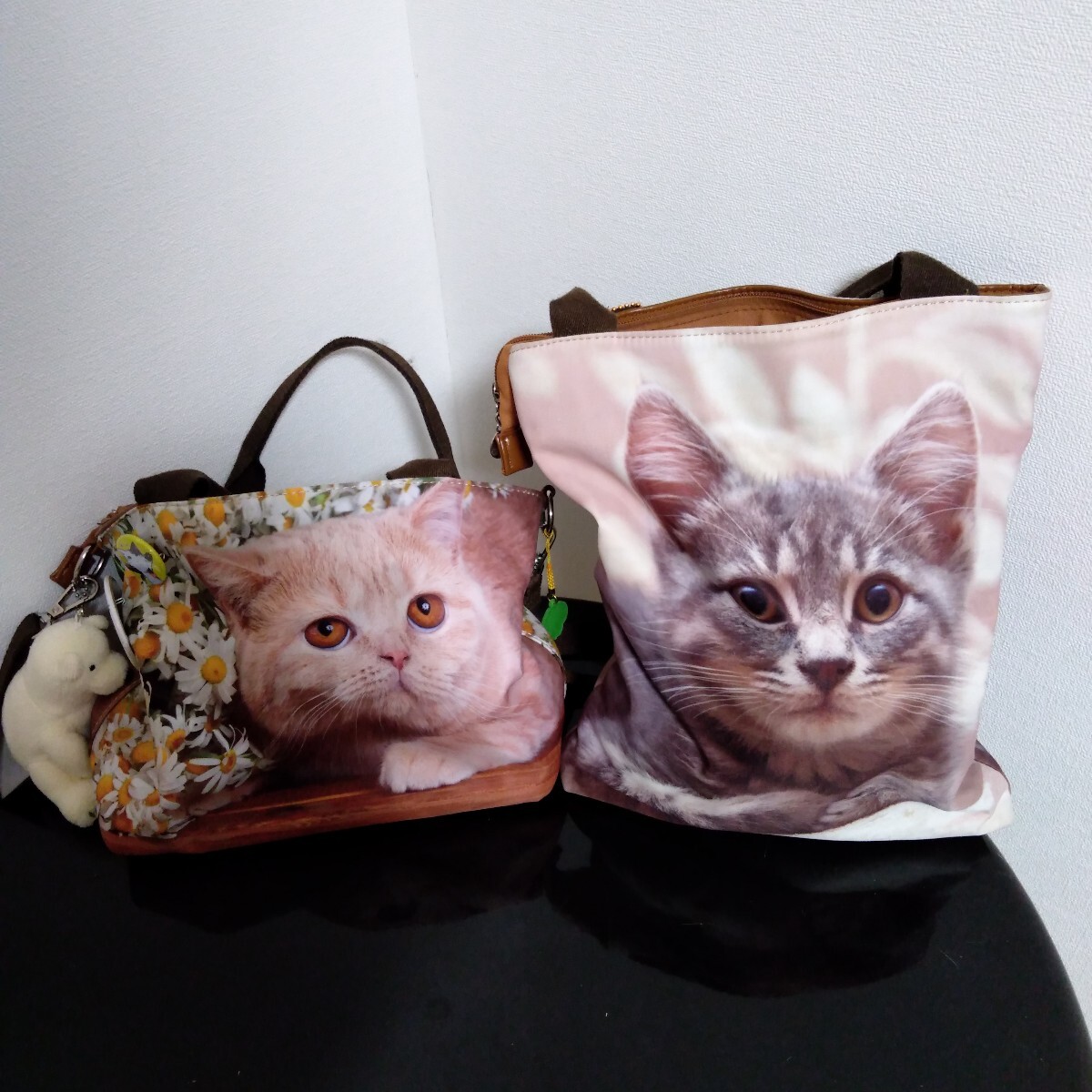 - ねこプリントのバック2点セット かばん ショルダーバッグ 肩掛け