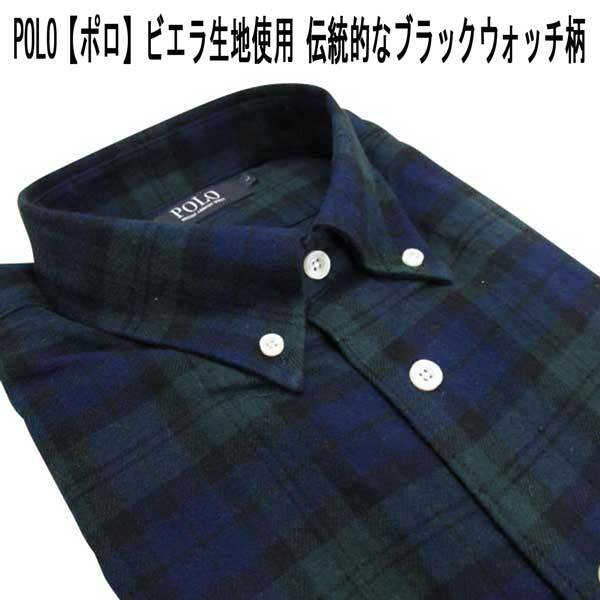 - POLO 綿1P刺繍BDシャツ ビエラ/ブラックウオッチ柄 紺グリーンLL