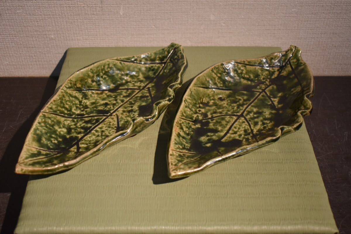- 本物保証 北大路魯山人 木の葉皿 2客 古美術品 木箱 箱書 本物返品OK 241006−4