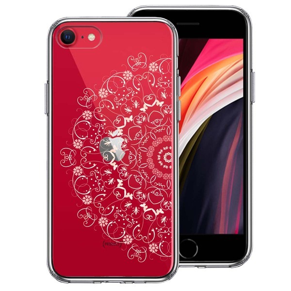 - iPhoneSE ケース 第3世代 第2世代 クリア 曼荼羅 花柄 スマホケース 側面ソフト 背面ハード ハイブリッド