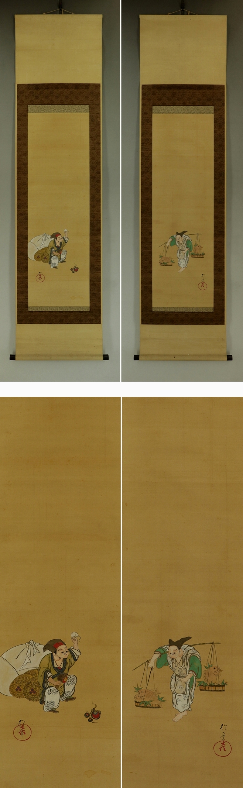 - 【模写】酒井抱一【双幅・慶祝図】◆絹本◆合箱◆掛軸 s08028