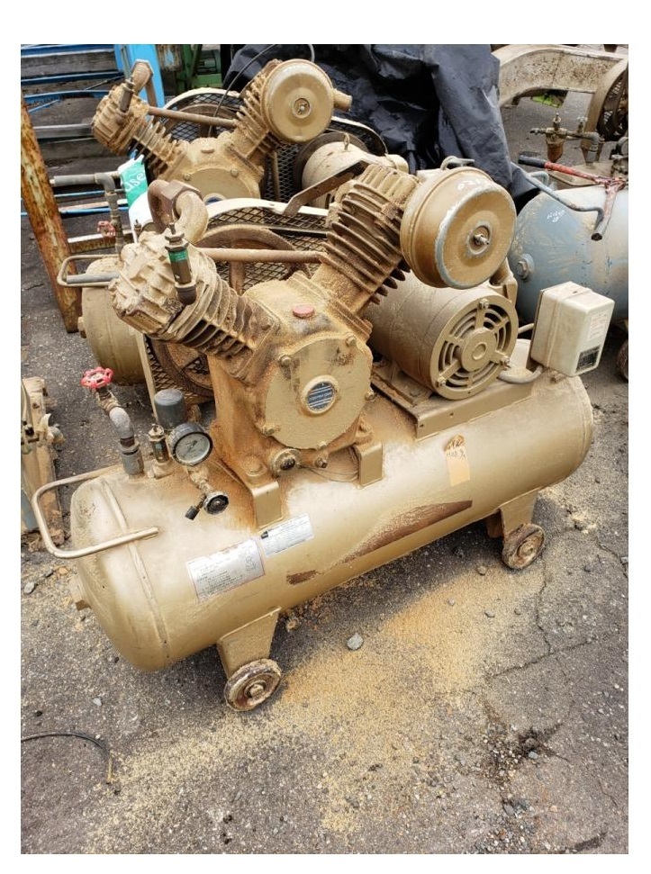 - c3A【棚秋田イ田口021209-1】3.7kw エアーコンプレッサーレシプロ 東芝 200V 50Hz