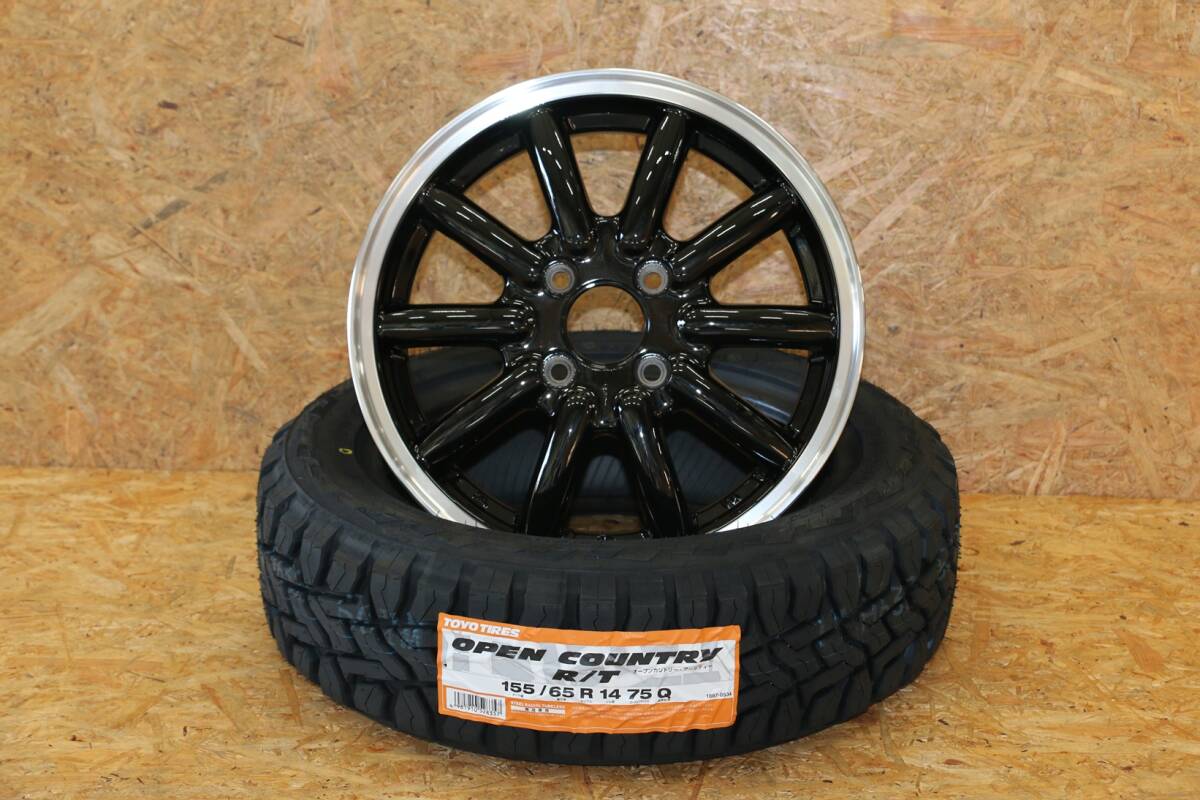 - フェニーチェ RX1 14インチ 4.5J +45 4/100 ブラックポリッシュ TOYO オープンカントリー R/T 155/65R14 4本セット 軽カーなど