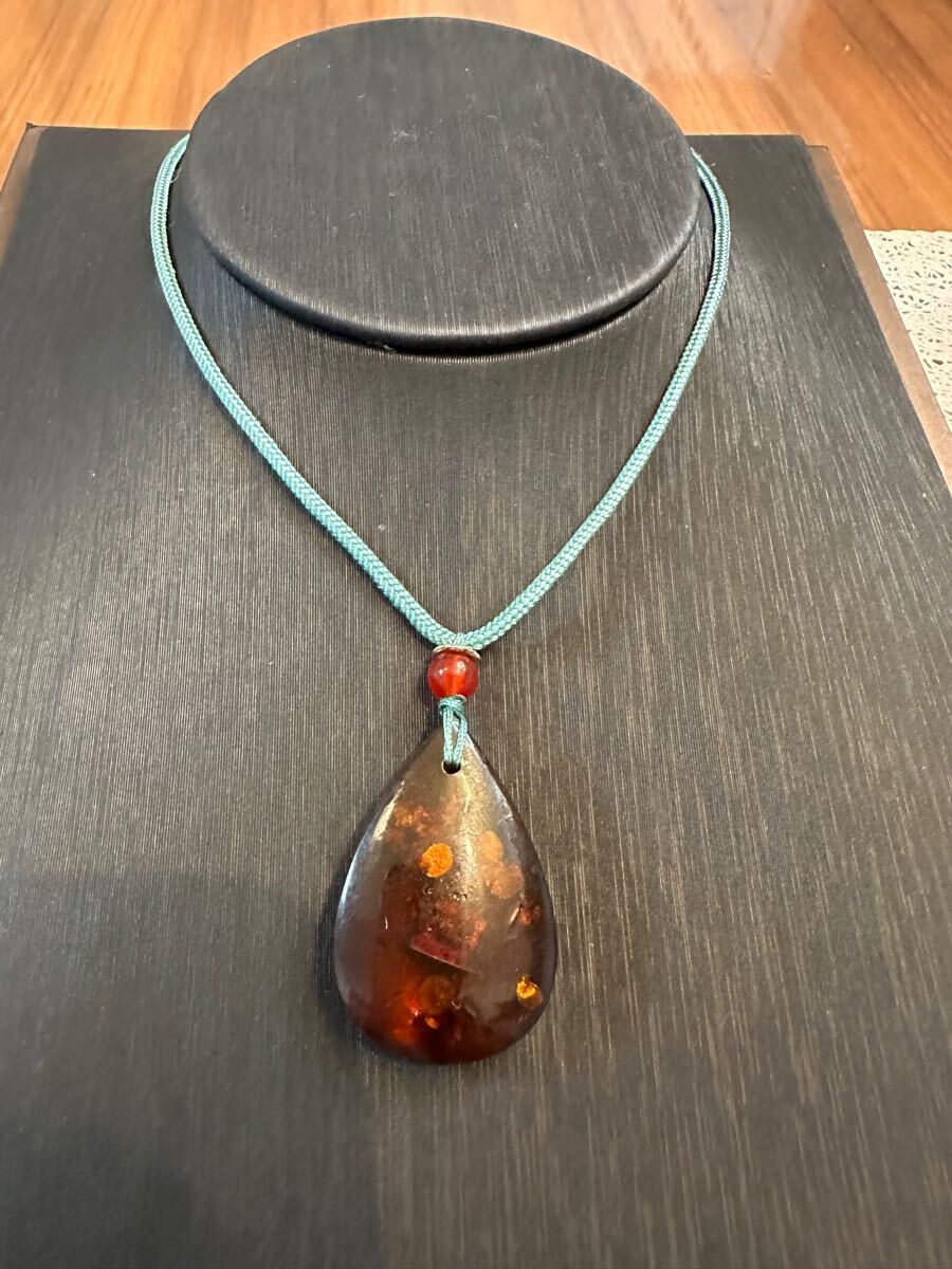 - Z-685 天然 アンバー 本琥珀 蜜蝋 花珀ペンダント ネックレス 天然保証