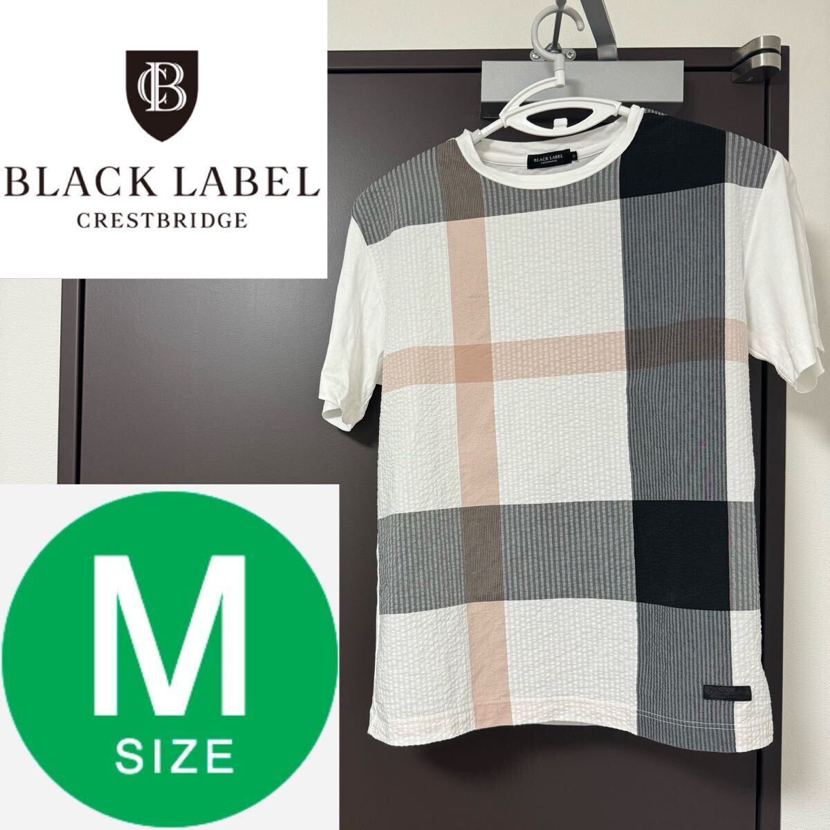 > BLACKLABEL CRESTBRIDGE ブラックレーベル クレストブリッジ メンズ Tシャツ 半袖Tシャツ シアサッカー 半袖 メンズ Mサイズ M 白 ホワイト