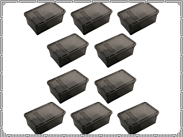 - 新品 両生類飼育 2WAY プラスチックケース 展示ケース 上蓋 大開き 横置き 段差有り ブラック 10個セット [2603:madi]