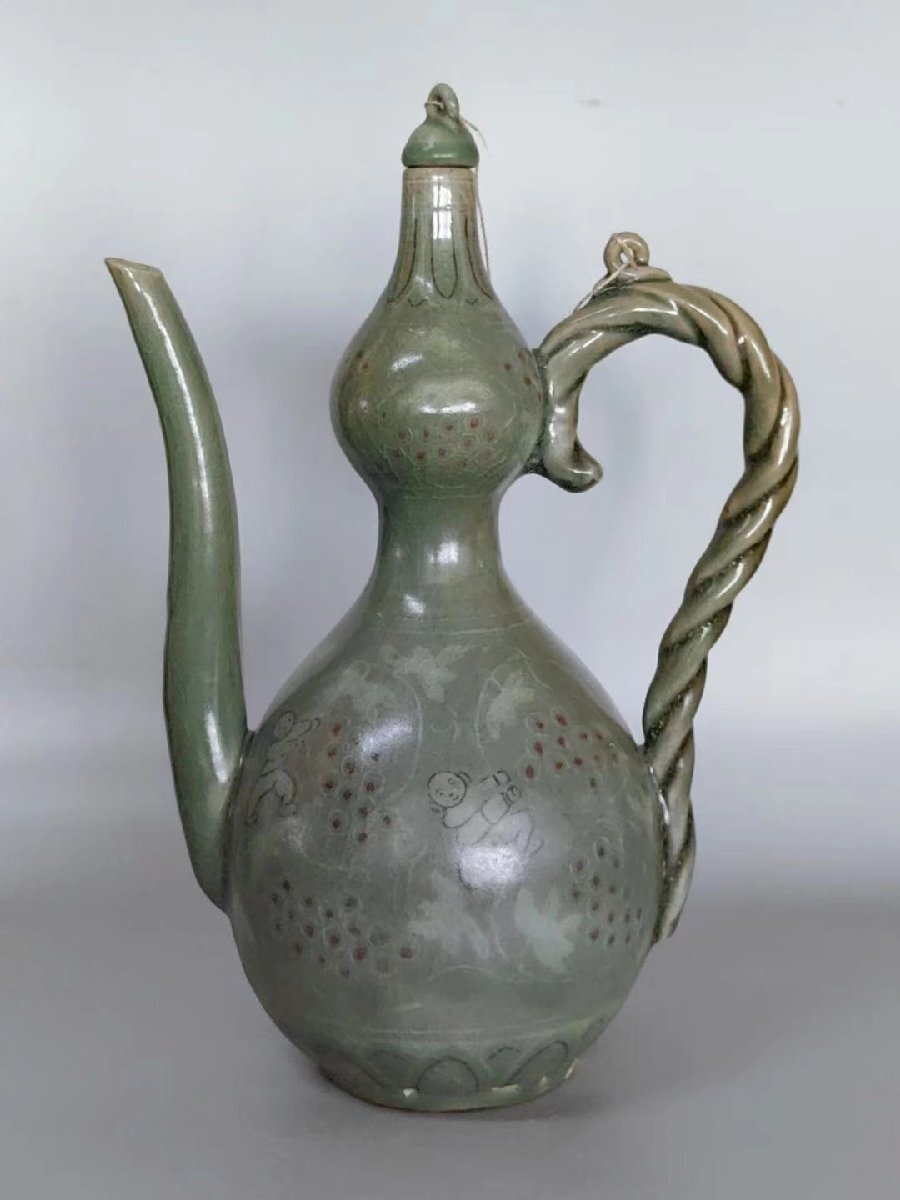 - ▼渡鶴羽▼P332コレクター放出 朝鮮古美術 朝鮮古陶 高麗磁 古高麗 高麗青磁 高麗青磁執壺