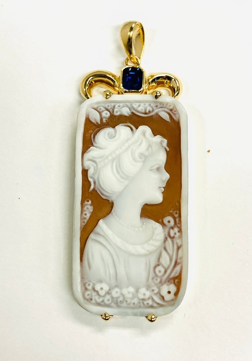 - qoj.Z1O03 K18 ゴールド カメオ ブルーサファイヤ ペンダントトップ 1PB0.37ct