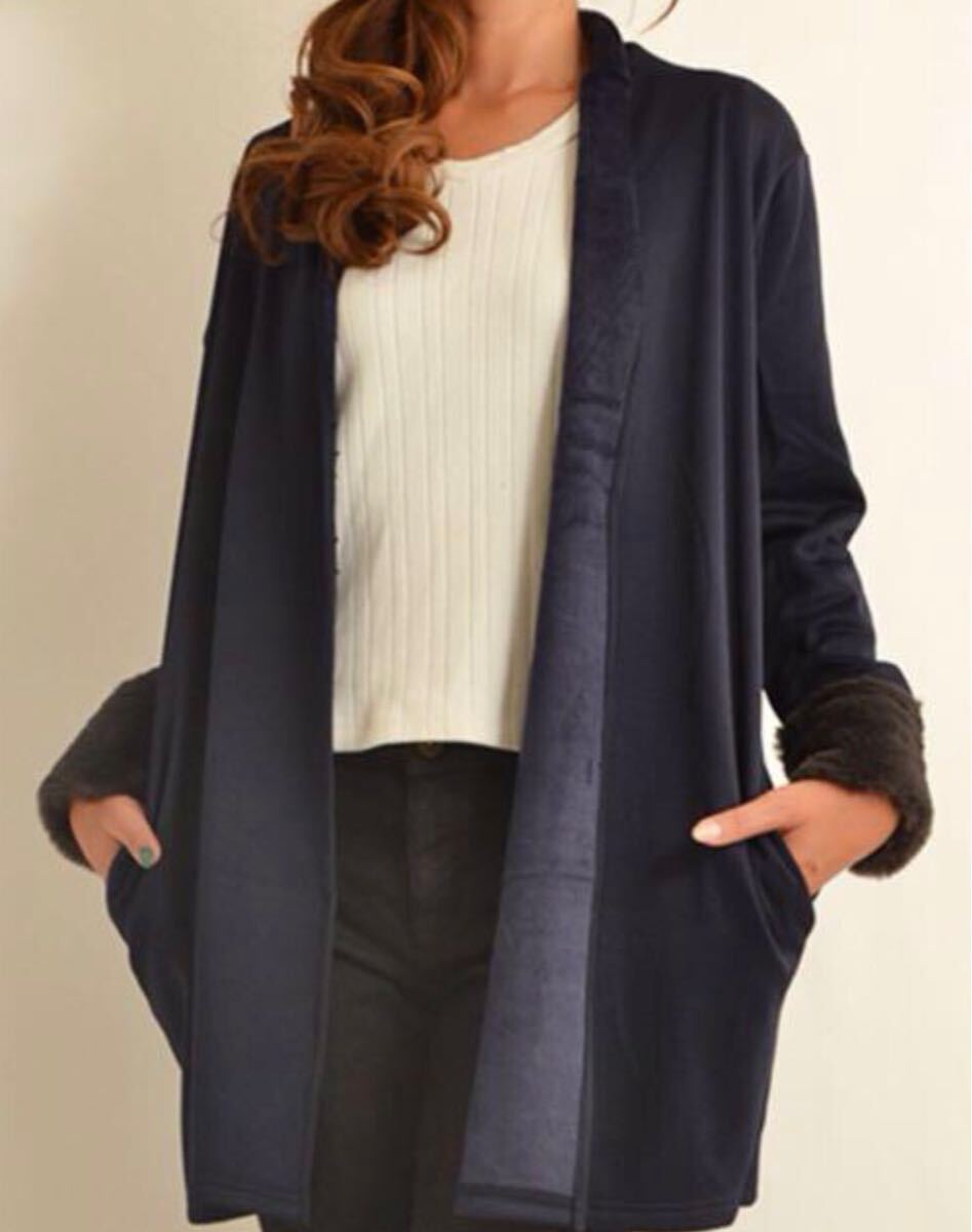 - 裏シャギー袖口ファーカーディガンダークグリーン カーディガン ゆったり