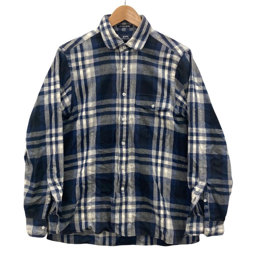 > 中古◆シャツ アイクベーハー シップス別注 ネルシャツ チェック アメリカ製 ネイビー系 メンズ サイズS SHIPS IKE BEHAR 【AFB28】