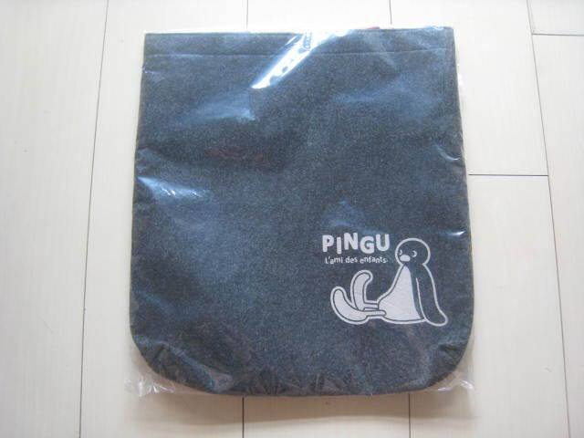 - 即決★希少レア 非売品 住友生命 SUMITOMO★ピングー PINGU フェルトバッグ/トートバッグ 手提げバッグ/濃グレー/A4ファイルok/約32×31cm