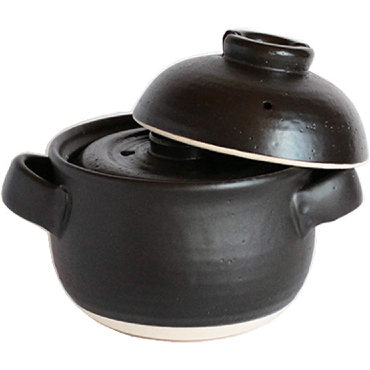 - 四日市の伝統工芸品 萬古焼 ごはん鍋 3合炊き 直径17.5cm 容量1500ml 中蓋付
