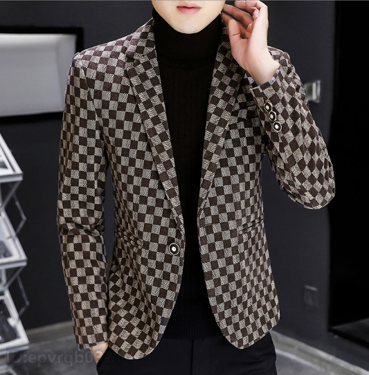 - テーラードジャケット※新入荷 ブレザー 折り襟 スリム チェック柄 メン ズ カジュアルスーツ 紳士 トップス サイズ選択可 コーヒー/XL