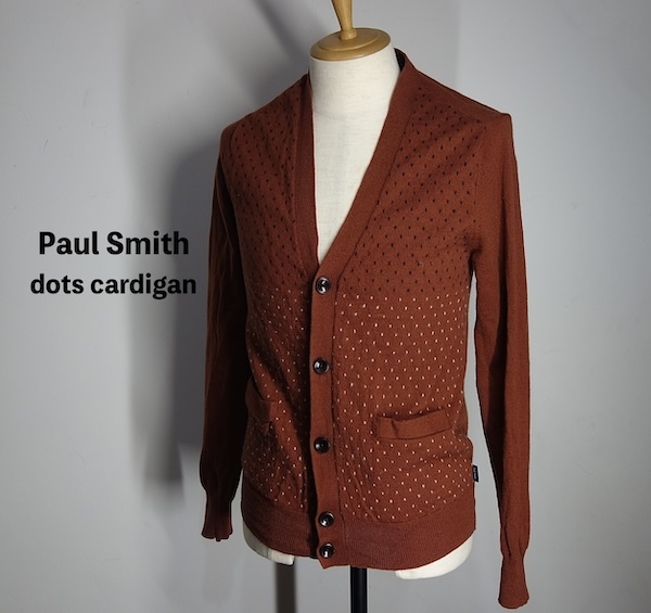 - TK 美品 ポールスミス ジーンズ 2色ドット柄 ポケット付 カーディガン 茶ブラウン ニットジャケット