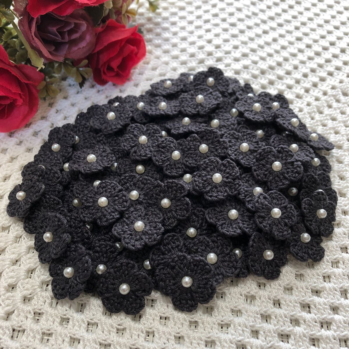- (No.14)☆ハンドメイド☆可愛いお花(^^)100枚【ソフトブラック】モチーフ パーツ等に