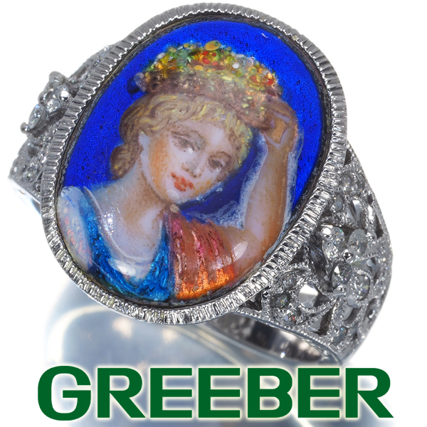 - 七宝 エマイユ ダイヤ ダイヤモンド 0.26ct 女性像 リング 指輪 K18WG 指輪 GENJ 限界値下げ品