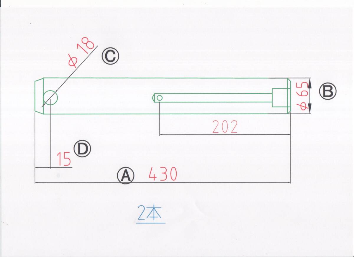 - NO 1903 Φ65用 全長430mm グリス穴付きバケットピン 2本 1セット