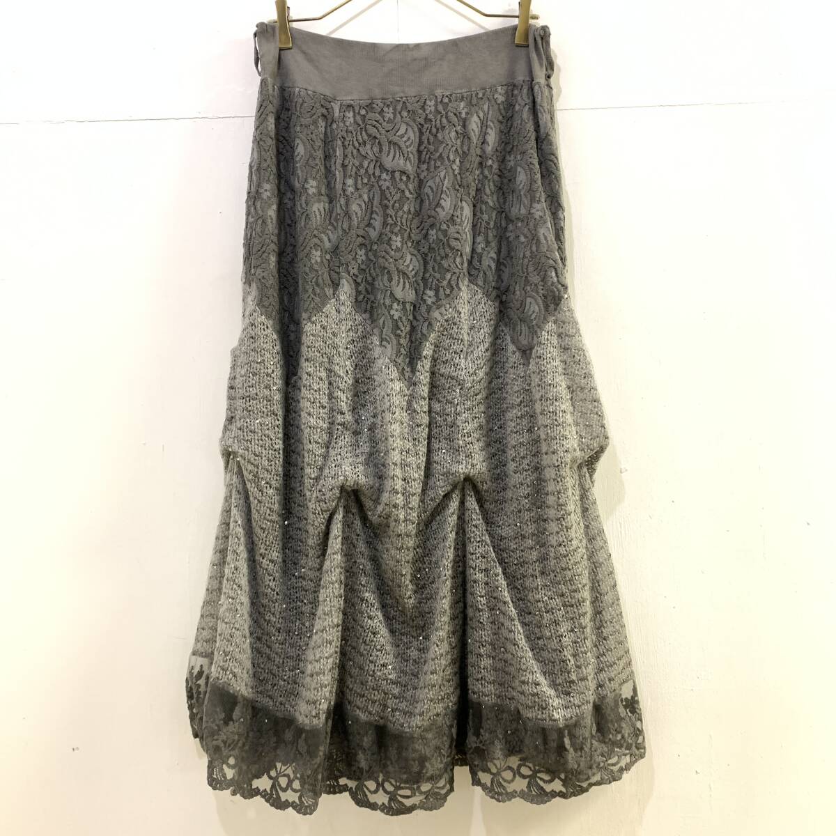 > ☆イタリア製 ダンシングハート モヘア混 レース刺繍装飾デザイン スパンコール ロングスカート グレー系 古着【送料一律/同梱可能】G