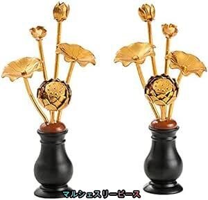 - 常花 仏花 常花セット お盆用品 蓮花 はすはな 仏具 ロータス 蓮 花びん付き 花立付き 左右一対 2個セット 金メッキ 金色蓮