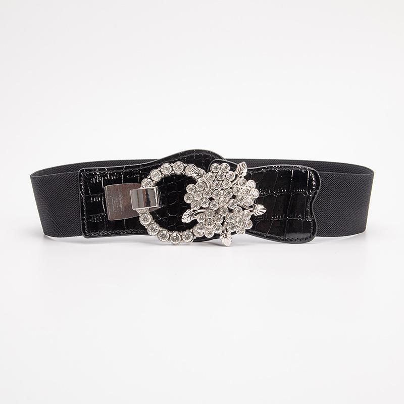 - 69cm~90cm【ブラック】キラキララインストーンバックル 幅広ゴムベルト