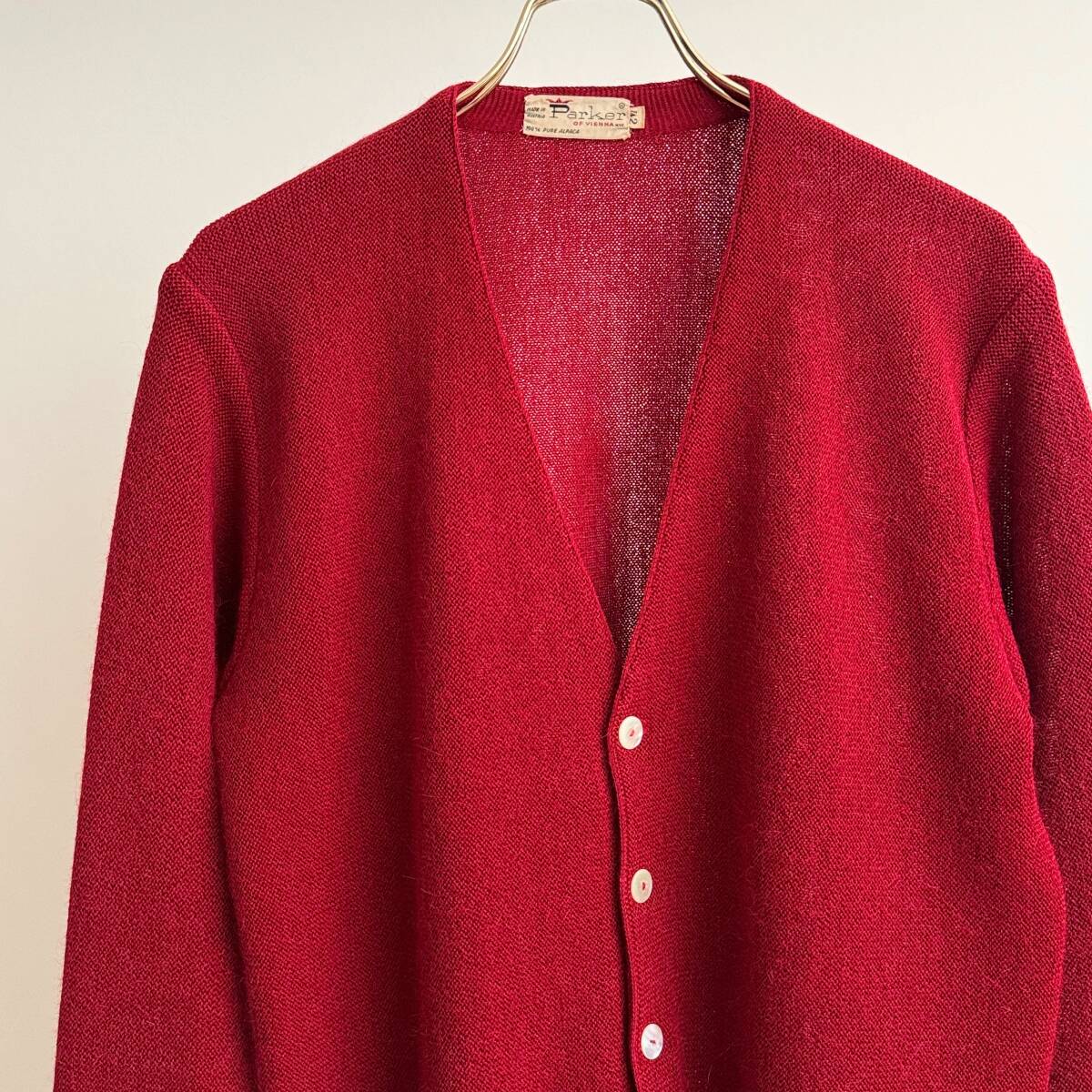 - 希少 《Mint Condition / Parker》60s70s 美品 【 パーカー ボルドーレッド 無地 アルパカ カーディガン 42 オーストリア製 ビンテージ 】
