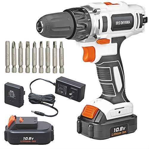 - ● アイリスオーヤマ 電動ドリルドライバー 充電式 軽量 コードレス LEDライト 正逆転切替 JCD28 充電器・バッテリー・ビット10種付き