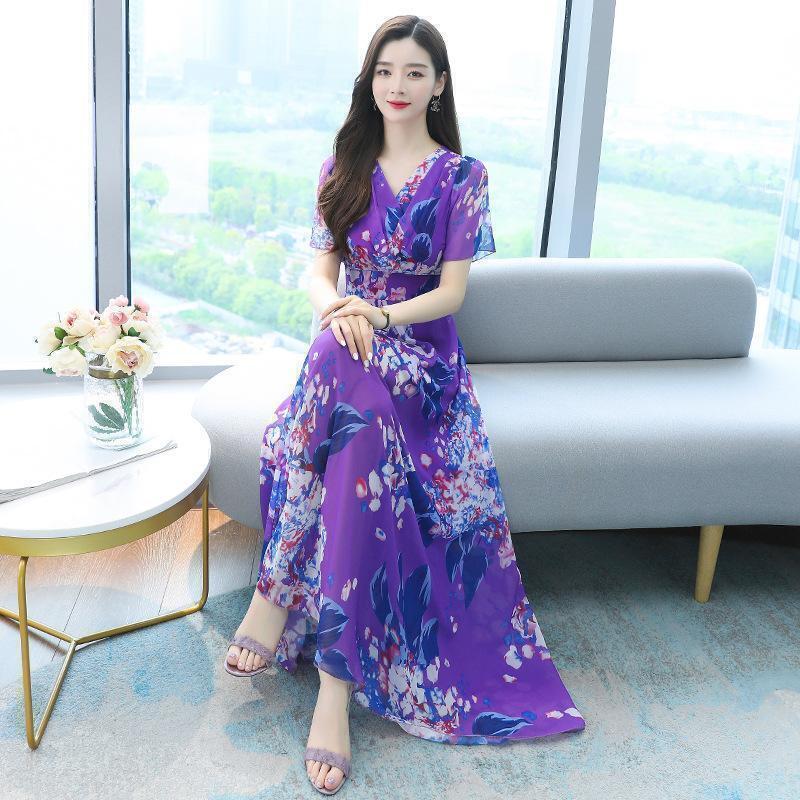 - 【パープル花柄★Lサイズ】レディース ロングワンピース