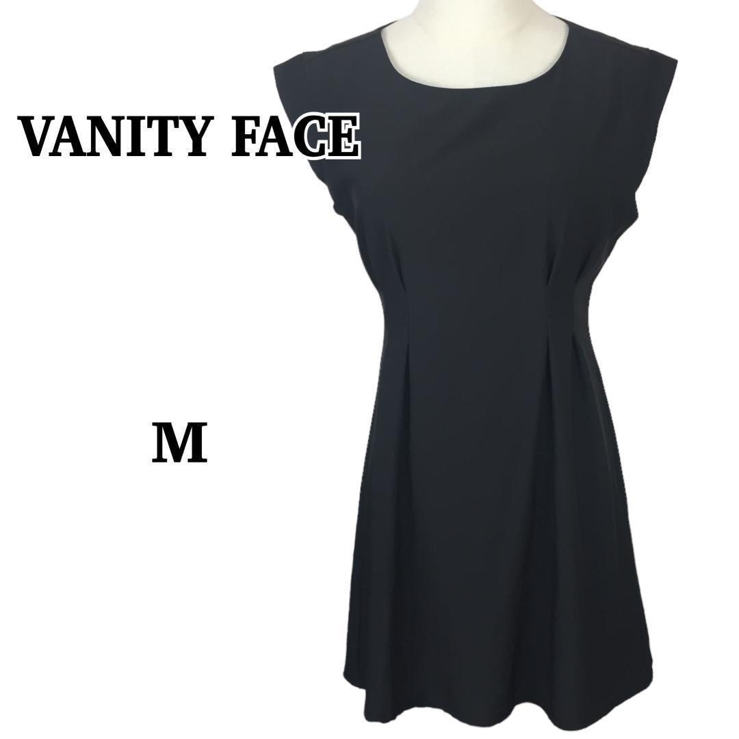 - C0450 ④ヴァニティーフェイス【M】ひざ丈ワンピース シンプル カジュアル ブラック 黒