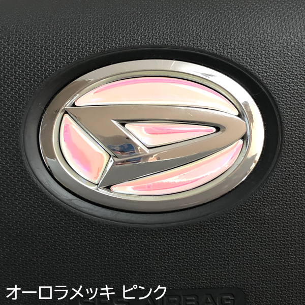 > ダイハツ ステアリング エンブレム オーロラメッキピンク SDH-D01 ハンドル用 樹脂盛立体3Dシール DAIHATSU マジョーラ レインボー ZEROWIN