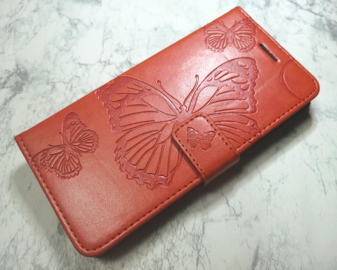 > 手帳型 iPhone14/13 用 ケース 蝶柄 バタフライ オレンジ