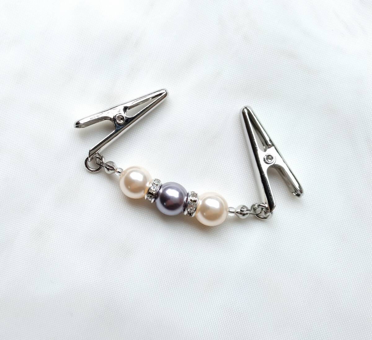 - ミニストールクリップ スワロフスキーパールのショール留め ショートクリップ パープル