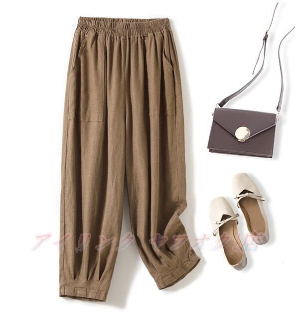 - ☆新品サイズ選択可 カジュアル ワイドパンツ 無地 綿麻 シンプル 合わせやすい リネンワイドパンツ チョコ